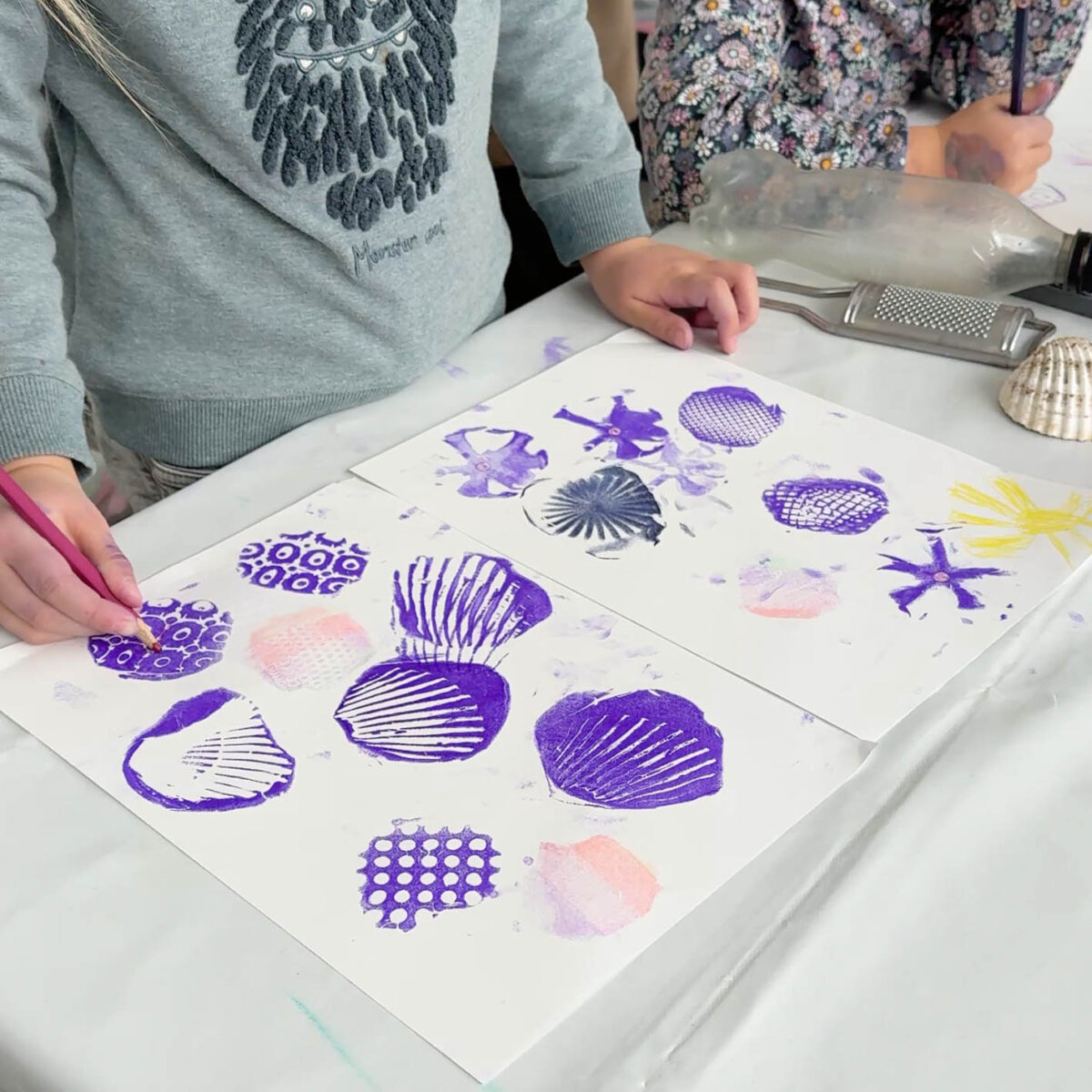 We are now offering a new open format with two walk-in workshops, where you can drop by spontaneously with your children and dive straight into creative activities. The first Sunday was a great success – many curious and creative children and relaxed parents joined us to stamp, experiment, and create.